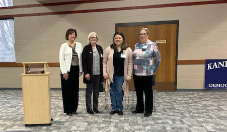 The Kane County Democratic Women began its ninth year with the annual meeting on January 10th at Sunset Community Center in Geneva, IL. The following officers were elected for two-year terms: Carolyn Bird-Salazar, Chair; Lois Swatscheno, Vice Chair; Kim Young, Treasurer; and Lindsay Morris, Secretary. Robin Barazza was recognized for her work as head of the Fundraising Committee for the last four years.